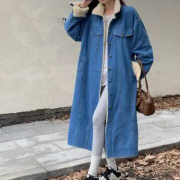 Show moreExperience the perfect blend of warmth, style, and functionality with the **Chouyatou Women's Warm Winter Windproof Sherpa Fleece Lined Long Denim Coat**. Designed for those who refuse to compromise on comfort during chilly days, this denim coat features a luxurious turn down faux fur collar that adds a touch of elegance while keeping you snug. Crafted with a slouchy drop shoulder design, long sleeves, and a flattering mid-long length, this coat effortlessly combines fashion with practicality. The classic button down closure not only enhances its stylish appeal but also provides versatility in layering. With ample storage provided by two button flap chest pockets and two side-entry hand pockets, you’ll have all your essentials close at hand without sacrificing style.