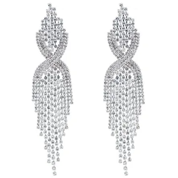 Show moreIntroducing the **CHRAN Silver Rhinestone Long Tassels Dangle Chandelier Earrings** – a stunning jewelry piece that promises to transform your style and make heads turn! Each earring is beautifully designed to feature first-class White Genuine Austrian Rhinestones, ensuring you emit elegance and sophistication with every wear. Crafted from high-quality silver-tone metal, these earrings shine brightly, reflecting light and showcasing their stunning sparkle.