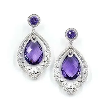 Chris Aire Amethyst and Diamond Earrings - Queen Amina - 18 Karat - White Gold - Pear Shaped Earring - Round Brilliant Diamonds - Purple Gemstones - Birthstone Jewelry - Excellent Gift for Her