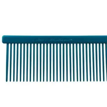 Chris Christensen 000 7.5 in. Greyhound Style Fine/Coarse Colored Butter Comb, Groom Like a Professional, Rounded Corners Prevent Friction and Breakage, Solid Brass Spin with Steel Teeth (Blue)