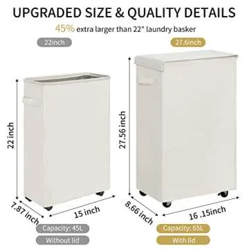 Chrislley 65L Slim Laundry Hamper with Lid - Upgrade to Portable Rolling Storage