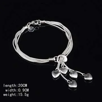 CHRISLZ Women's Heart Charm Bracelet Jewelry Exquisite Silver Heart Pendant Hand Chain