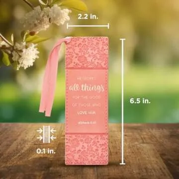 Introducing the Christian Art Gifts Premium Vegan Leather Scripture Bookmark, a beautifully crafted accessory designed for those who cherish both their books and their faith. This bookmark elegantly features the empowering Bible verse from Romans 8:28, debossed in eye-catching metallic gold, surrounded by a delightful peach floral design that complements any reading material. Measuring approximately 6.5 by 2.2 inches, its perfect size ensures it fits flawlessly in your Bible,...