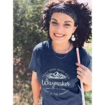 Christian Shirt for Women Waymaker Miracle Worker Promise Keeper Shirt Christian Gift Tee Faith Shirt God Graphic Tee Blue