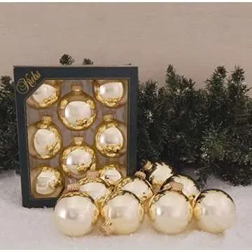 Krebs Elegant USA-Made Seamless Glass Christmas Ornaments, 2 5/8", 8 Pieces (Tiffany Gold)