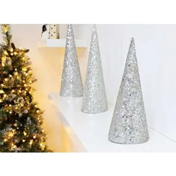 Christmas Concepts® Set of 3 Various Size Christmas Cone Trees Decorations with Sequins and Beads (Silver)
