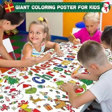 Christmas Crafts Giant Coloring Poster for Kids - 72 x 31 Inches Jumbo Paper Tablecloth Christmas Banner | Table Cover Gifts Toys for Boys Girls Classroom Party Games Activity Christmas Decorations