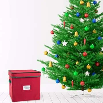 Show more Introducing the Christmas Decor Storage Box by Elf Stor, the ultimate solution for keeping your holiday decorations safe, organized, and easily accessible! Crafted with 600D Oxford Canvas, this stunning red ornament cube chest promises not only aesthetics but also functionality. With the capacity to store up to 64 ornaments—up to 3 inches in diameter—this storage box is designed with thoughtful cardboard dividers to keep each precious item in its place. Say goodbye to tangled and displaced ornaments and hello to effortless organization this holiday season!