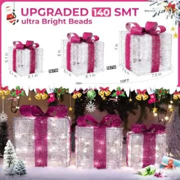 Christmas Decorations Hot Pink, Christmas Lighted Gift Boxes 140 LEDs Light Up Christmas Decor, 8 Modes & Timer Function Plug-in Lighted Christmas Boxes for Xmas Wedding Valentine's Day Indoor Outdoor