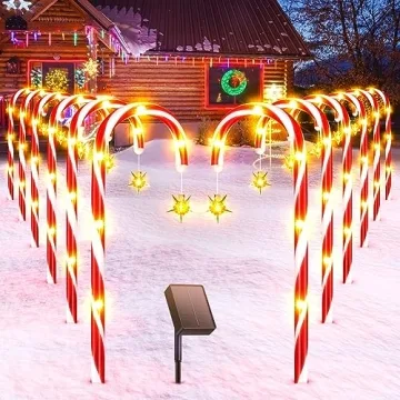 Show moreEnhance your holiday spirit with the BUCASA 12Pack Solar Candy Cane Lights, the ultimate Christmas decorations for your outdoor spaces! Featuring a stunning array of **144 LED lights** and 8 distinct lighting modes, these candy cane lights transform your yard into a dazzling winter wonderland. With their energy-efficient **solar panel** technology, they offer a bright and enchanting display perfect for creating a festive atmosphere that will delight friends and family alike.