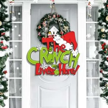 Christmas Door Hanger Decorations,2Pcs XL Wooden Christmas Door Sign,Christmas Tree Decorations,Christmas Thief Stole Deco,2024 Xmas Gifts for Wall Decorations Indoor Outdoor