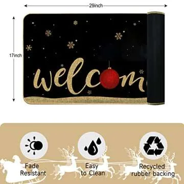 Christmas Door Mat Xmas Welcome Merry Christmas Mat Non-Slip and Washable Winter Doormat Rubber Back Santa Snowflakes Door Mat Rugs for Indoor Outdoor
