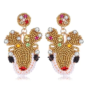 Christmas Eaarrings for Women Beaded Rhinestone Christmas Reindeer Earrings Xmas Statement Drop Dangle Earrings Christmas Holiday Party Decoration Gifts