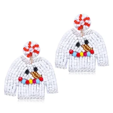 Christmas Earrings for Women Beaded Holiday Reindeer Snowman Sweater Earrings Handmade Red Truck Christmas Tree Drop Dangle Earrings Statement Earring Festive Jewelry Gifts