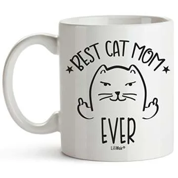 Christmas Gifts For Cat Lovers, Funny Cat Mom Gift Mug Themed Cup.Crazy Cat Lady Lover Stuff Things Women Novelty Coffee Cups Mugs.Best Ever Cats Middle Finger Flicking Off Unique Catlover presents.
