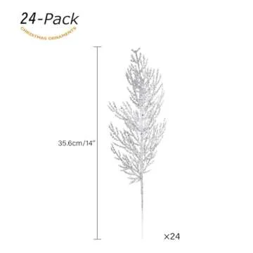 Christmas Glitter Stems 24pcs Artificial Pine Tree Picks for Christmas Tree Ornaments fillers, DIY Xmas Wreath, Crafts, Garland, Holiday, Party, Wedding and Home Decoration (Silver)