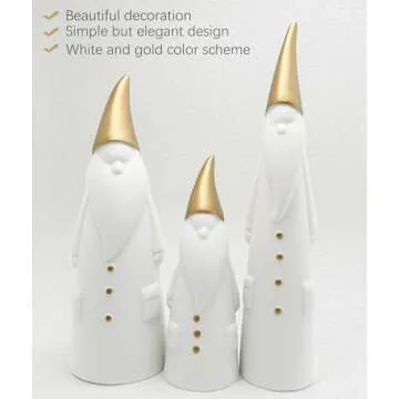 Christmas Gnome Santa Claus Statue Figurine, Decorative Ceramic Santa Clause Christmas Xmas Ornament Home Decor Accents Collectible Santas Figurine Sculpture, Winter Table Mantel Fireplace Ornament