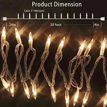 Show more Transform your space into a dazzling wonderland with our Connectable String Lights, featuring a stunning 100 mini clear lights that can illuminate your surroundings with a delightful warm white glow. These lights are not just for Christmas; they serve as an enchanting decor addition to any event or ambiance, whether it's a festive celebration or a cozy evening at home. Crafted with safety in mind, our lights are UL certified, assuring you of their compliance with US safety standards for both indoor and outdoor use.