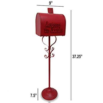 Christmas Mailbox Letters To Santa Claus Metal Holiday Decor, Christmas Cards To The North Pole- Large 48" Red Enchanted Winter Decorative Vintage Magical Northpole Outdoor Mail Box Letter Holder