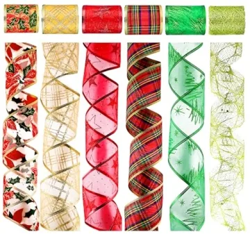 Vibrant 6 Rolls Christmas Ribbon Set, 36 Yards for Wrapping, Decorating & Crafting