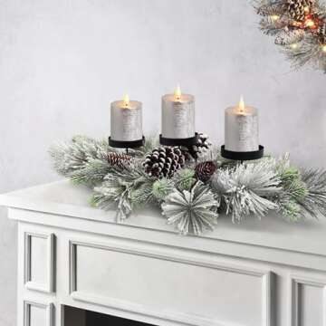Elegant Snowy Christmas Centerpiece with Candle Holders