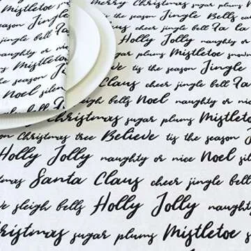 Christmas Table Napkins with Jingle Bells, Mistletoe, FA La La (Off-White, 20x20 inch, Pack of 6 Cloth Napkins)