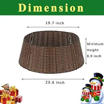 Show more Introducing the **Christmas Tree Collar**, an exquisite addition to your holiday decor that elevates your seasonal experience. This 23’’ diameter Handmade Artificial Rattan Wicker collar serves as a stylish and practical alternative to traditional tree skirts, providing a unique texture and rustic charm to your Christmas tree setup. Crafted with attention to detail, it showcases a masterful handwoven design that incorporates durable PE and metal materials, resembling real rattan wicker. It's not just about aesthetics—this collar fully conceals your tree stand, ensuring a neat appearance while protecting the area around your tree. Its convenient bottomless design allows for easy installation, making your holiday preparations smoother than ever.