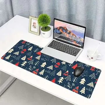 Christmas XL Large Mouse Pad, Pull Desk Gaming Mousepad with Christmas Tree, Dog, Deer and Snowflakes, Extended Big Keyboard Computer Desktop Mat Deskmat for Women Office, 31.5 * 11.8 Inches