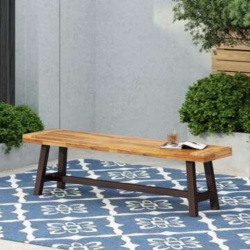 Christopher Knight Home Carlisle Outdoor Acacia Wood and Rustic Metal Bench, Sandblast Finish / Rustic Metal 14. 75 x 63 x 17. 50 inches