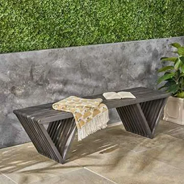 Show moreIntroducing the Christopher Knight Home Esme Outdoor Acacia Wood Bench, a perfect blend of functionality and style for your outdoor spaces. Measuring 16.50 inches deep x 63.00 inches wide x 17.75 inches high, this meticulously handcrafted bench is crafted from premium acacia wood, known for its durability and natural beauty. The rich dark gray finish not only offers a sleek appearance but also enhances the bench's resilience against outdoor elements, making it ideal for patios, decks, and gardens. The unique wire-brush finish adds a delightful texture, transforming a simple bench into a striking piece of outdoor furniture.