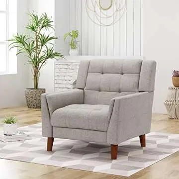 Show moreIntroducing the Christopher Knight Home Evelyn Mid Century Modern Fabric Arm Chair: Combining elegant design with comfort and functionality, this charming armchair is a standout piece for any living space. Crafted with a keen eye for detail, this chair features iconic splayed legs made from durable birch wood, giving it both stability and a stylish finish. The beautifully tufted upholstery not only enhances the visual appeal of the chair but also provides a cozy seating experience, making it a perfect addition to your home decor. Whether you're reading, working, or enjoying your favorite show, this armchair promises to be a reliable companion with its timeless aesthetic and robust construction.