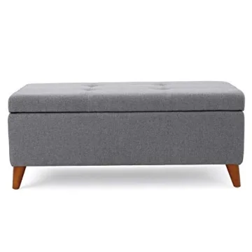 Show moreIntroduce a touch of elegance and practicality into your home with the Christopher Knight Home Harper Fabric Storage Ottoman in Grey. This stylish, traditional ottoman is designed to seamlessly fit into any decor while providing a smart storage solution. Crafted with a soft and durable fabric, this ottoman measures 19.25 inches in diameter, 38 inches in width, and stands 16.25 inches high, making it the perfect size to enhance any room. The lift-top feature offers easy access to ample storage for board games, remotes, or other living room essentials, ensuring a clutter-free space while still allowing you to kick up your feet or provide additional seating when guests arrive.