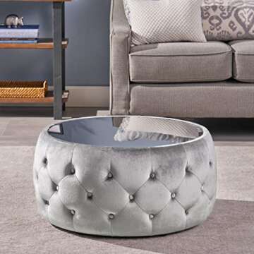 Christopher Knight Home Ivy Glam Velvet and Tempered Glass Coffee Table Ottoman, Smoke, Black