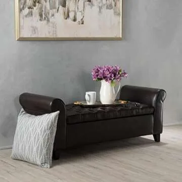 Christopher Knight Home Keiko Contemporary Rolled Arm Storage Ottoman Bench for Stylish and Organized Spaces