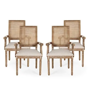 Step into a world of charm and sophistication with this exquisite chair set, exquisitely designed to bring a touch of French country inspiration into your home. Featuring slender fluted legs and a chic square backrest crafted from cane, this chair set is a homage to the classic elegance of Queen Anne style. With elegant curves and comfortable armrests, these chairs are not just furniture; they are a statement of refined taste and style.