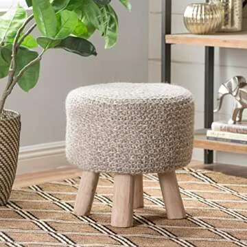 Compared to other stools on the market, the **Christopher Knight Home Montana Fabric Stool** stands out due to its unique hand-knit construction and choice of chic colors. While many competitors offer synthetic materials that tend to wear and fray, the wool used here combines both softness and strength. Its elegant design and compact size make it a stylish alternative to bulky ottomans, thus saving valuable floor space without compromising on comfort—something that is often a challenge with furniture of a similar style.
