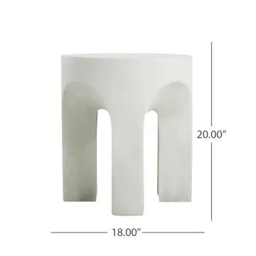 Christopher Knight Home Ottilie Outdoor Side Table, Lightweight Concrete Garden Stool with Four Legs Shaped, Decorative Accent Table Patio End Table for Patio Balcony Beach Pool Side, Antique White