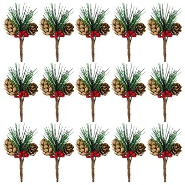 The pine cone picks are made from durable plastic and PVC pine needles, ensuring they maintain their vibrant look throughout the holiday season.