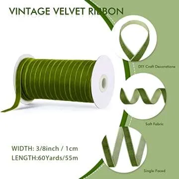 Show more Introduce a touch of elegance to your crafting and gifting experience with our premium velvet ribbon. This exquisite single-face velvet ribbon comes beautifully rolled on a sturdy cardboard core, preventing any worries about wrinkles or dirt. Available in a stunning array of colors, it provides a luxurious look that complements various applications, from sophisticated wedding decor to charming DIY projects. Crafted from comfortable and soft nylon material, this ribbon features a lustrous shine that adds a rich depth to any creation.