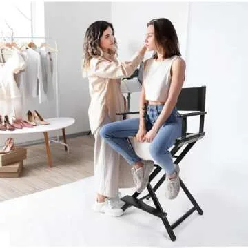 This chair isn't just sturdy; it's also designed for comfort. The high-density oxford fabric canvas not only adds to its durability but also enhances the seating experience with its wide seat and solid wood footrests, making it ideal for any artistic setup. Whether you’re in front of the camera or styling a client, you can count on its ergonomic design to provide optimal support.
