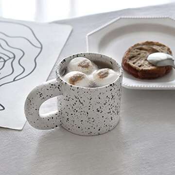 Chubby Fat Round Handle Ceramic Coffee Tea Mug Drinking Cup Trendy Aesthetic Nordic Style Pinterest Mug (Splashed Ink Black & White)