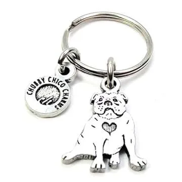 ChubbyChicoCharms Sitting Bulldog Pewter Charm On Stainless Steel Keyring