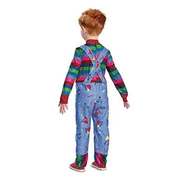 Show moreIntroducing the **Chucky Costume for Toddlers** – the perfect blend of spine-tingling fun and adorable charm! This officially licensed outfit honors the iconic character from the *Child's Play* movies, allowing your little one to step into the shoes of the most terrifying talking doll of all time. Crafted with meticulous attention to detail, this costume features a vibrant colored jumpsuit with an attached long-sleeved shirt, ensuring your child looks every bit as creepy as Chucky himself. Made primarily for toddlers in size medium (4T), the costume not only captures the essence of the character but also embraces comfort and ease of wear.