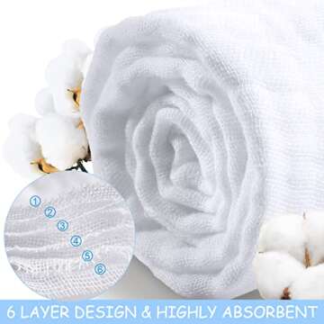The towels are crafted from 6 layers of soft muslin cotton, ensuring both softness and absorbency.