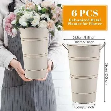 Chumia 6 Pcs 12 Inch Galvanized Metal Vase, French Flower Bucket for Cut Flowers, Metal Flower Bucket Decoration, Home Farmhouse Vase Table Decoration for Wedding Party(Beige)