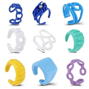 Show moreIntroducing our Chunky Colorful Rings for Women, a delightful set of 9 trendy acrylic resin rings that capture the essence of Y2K jewelry. Perfect for adding a burst of color and personality to any outfit, these cute stacking rings are designed for the modern woman who loves to express herself through fashion. Whether you're dressing up for a night out or going casual with friends, these rings are the perfect accessory to elevate your style. Made with high-quality acrylic resin, they are lightweight yet durable, ensuring you can wear them all day without discomfort. Slip them onto your fingers and experience the joy of vibrant hues and stylish designs!