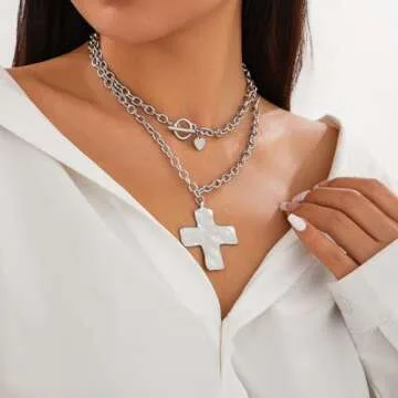 The necklace features a layered design, with a prominent cross pendant that serves as a focal point. Its bold styling allows it to be worn on its own or layered with other necklaces for a trendy look. Made with high-quality materials, this jewelry piece promises durability while remaining lightweight for comfortable wear throughout the day. The versatile nature of this cross necklace ensures it is suitable for all occasions, from daily wear to special events.