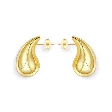 Show moreIntroducing the Chunky Gold Earrings for Women – the ultimate blend of style and comfort, designed to add a touch of elegance to your jewelry collection. These striking gold teardrop earrings are more than just accessories; they are a statement piece meticulously crafted to enhance your everyday look. Available in three sizes, they are perfect for any occasion, from casual outings to special celebrations such as bachelor parties or birthdays. The chic teardrop design coupled with the stunning gold plating creates a versatile pair that complements any outfit effortlessly.