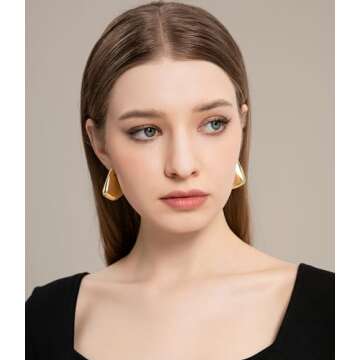 One of the standout features of these earrings is the use of **hypoallergenic 925 sterling silver ear posts**, making them safe and comfortable for even the most sensitive ears. The lightweight hollow design not only gives a chic geometric appearance but also ensures all-day comfort, allowing you to flaunt them without the weight often associated with statement earrings. With attention to both aesthetics and wearability, these earrings are truly a must-have piece for any fashion-forward woman.