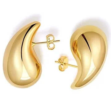 Show moreIntroducing the exquisite teardrop chunky style hoop earrings, a stunning accessory that defines elegance. Crafted with 18K real gold plating over durable brass, each piece features a 925 silver needle, ensuring that it's hypoallergenic and free from nickel and lead. These earrings are designed to make a statement without compromising on comfort. At a beautifully lightweight 0.29oz per pair, you'll barely notice them as you wear them throughout the day. The earrings measure 1.18 inches in length and 0.59 inches in width, making them the perfect size for those who appreciate a bold yet sophisticated look.